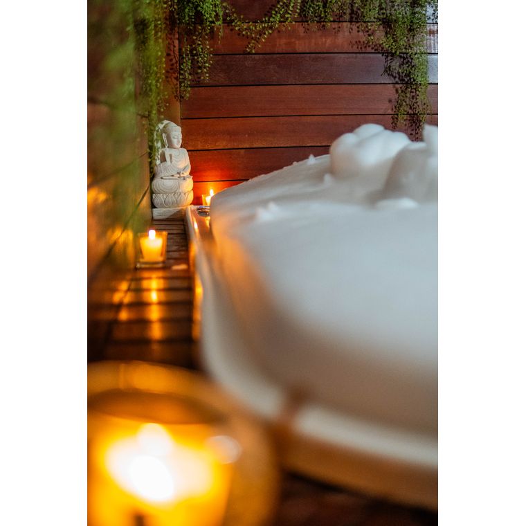 TERAPIA COM ATIVAÇÃO DOS PONTOS ENERGÉTICOS NOS PÉS, BANHO DE IMERSÃO COM AROMATERAPIA, CROMATERAPIA, SAIS DE BANHO E ESFOLIAÇÃO CORPORAL FOCADA EM HIDRATAR A PELE, RENOVAR CÉLULAS DO CORPO , RELAXAR A MENTE E O CORPO PROMOVENDO UMA SENSAÇÃO ÚNICA DE BEM ESTAR. SEGUIDOS DE UMA MASSAGEM RELAXANTE CORPORAL, MASSAGEM CRÂNIOFACIAL PARA FACE E TRAPÉZIOS E MÁSCARA FACIAL.