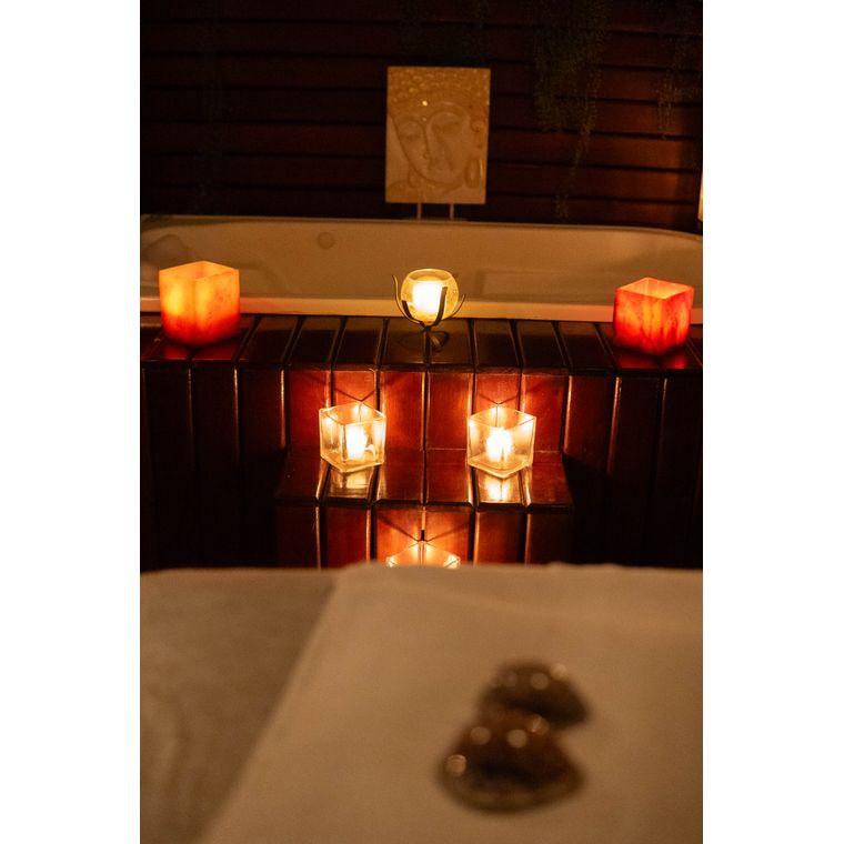 BANHO TERAPÊUTICO DE 30 MINUTOS COM ESFOLIAÇÃO CORPORAL, ÓLEO ESSENCIAL, ESPUMAS, SAIS DE BANHO E AROMATERAPIA, SEGUIDOS DE 1H DE MASSAGEM RELAXANTE.